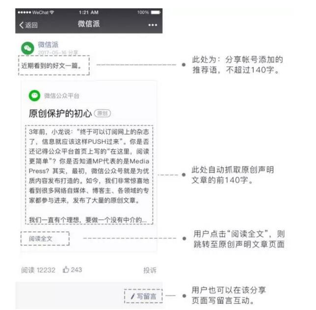 為原創(chuàng)帳號(hào)、文章帶去更多的流量,進(jìn)一步鼓勵(lì)原創(chuàng)內(nèi)容,保護(hù)原創(chuàng)作者的權(quán)益。同時(shí)促進(jìn)原創(chuàng)文章的合理分享,搭建分享者和原創(chuàng)者之間有效互動(dòng)的空間。