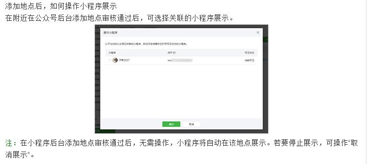 小程序使用公眾號(hào)的地點(diǎn)展示在“附近”