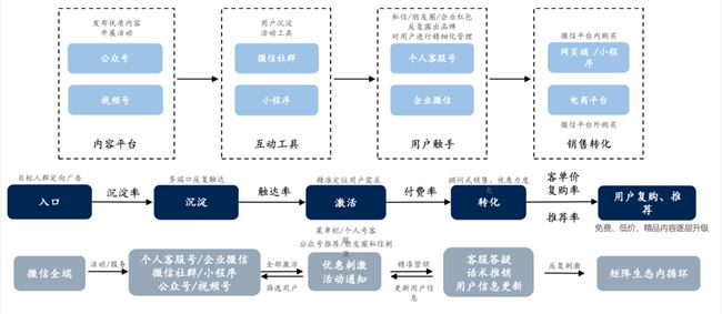 微信的公域流量至私域流量的運(yùn)營邏輯很簡單,以各種工具為載體,將免費(fèi)內(nèi)容和免費(fèi)社交關(guān)聯(lián)與付費(fèi)廣告進(jìn)行了結(jié)合,即滿足了頭部品牌高效率獲取私域流量的需求,又滿足了小微品牌免費(fèi)獲取私域流量的需求。
