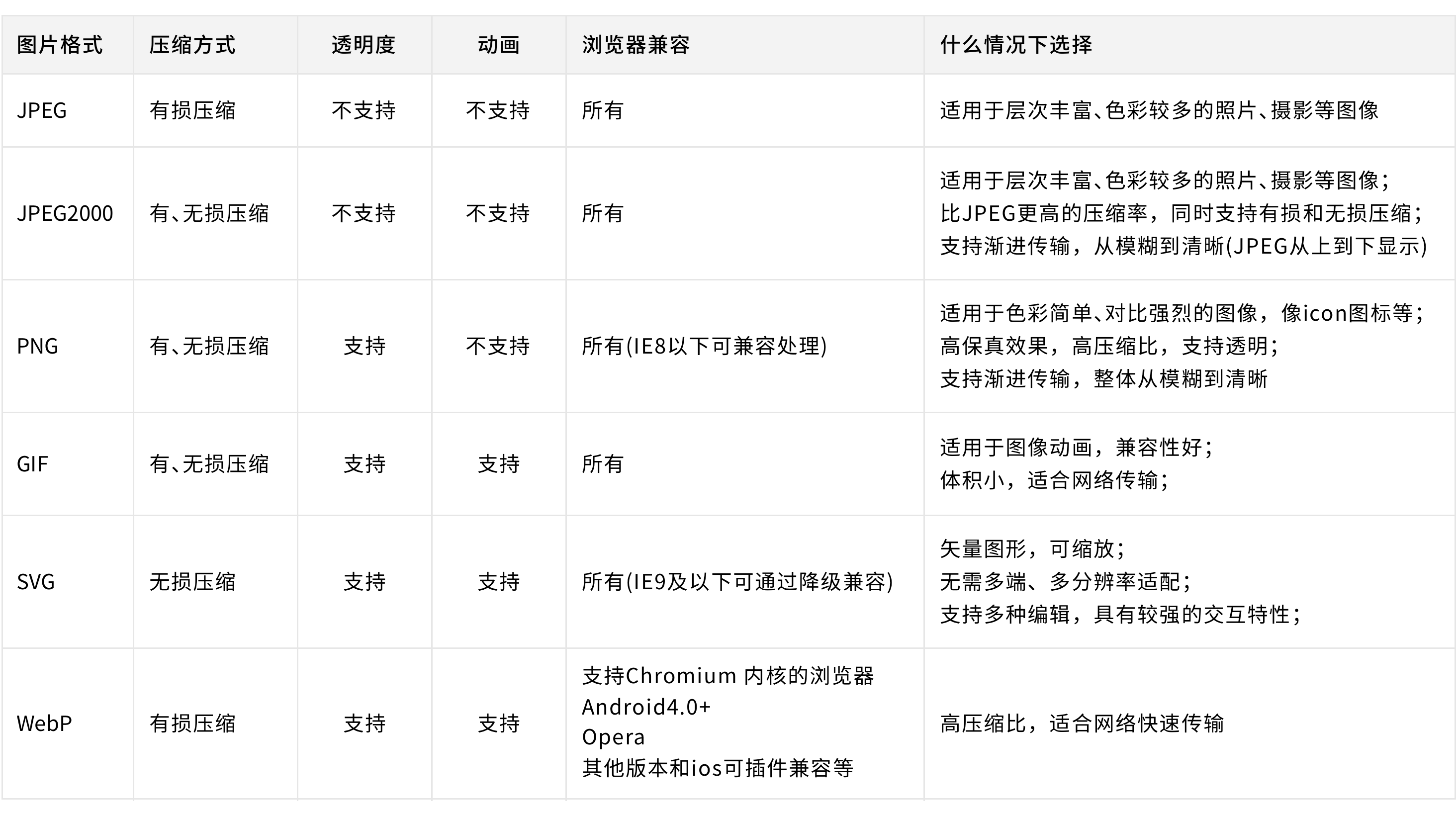 圖片格式多種多樣,其自身的優(yōu)缺點決定了使用場景及環(huán)境,在什么情況下采用何種的圖片格式,是我們作對的第一步,首先從了解他們入手: